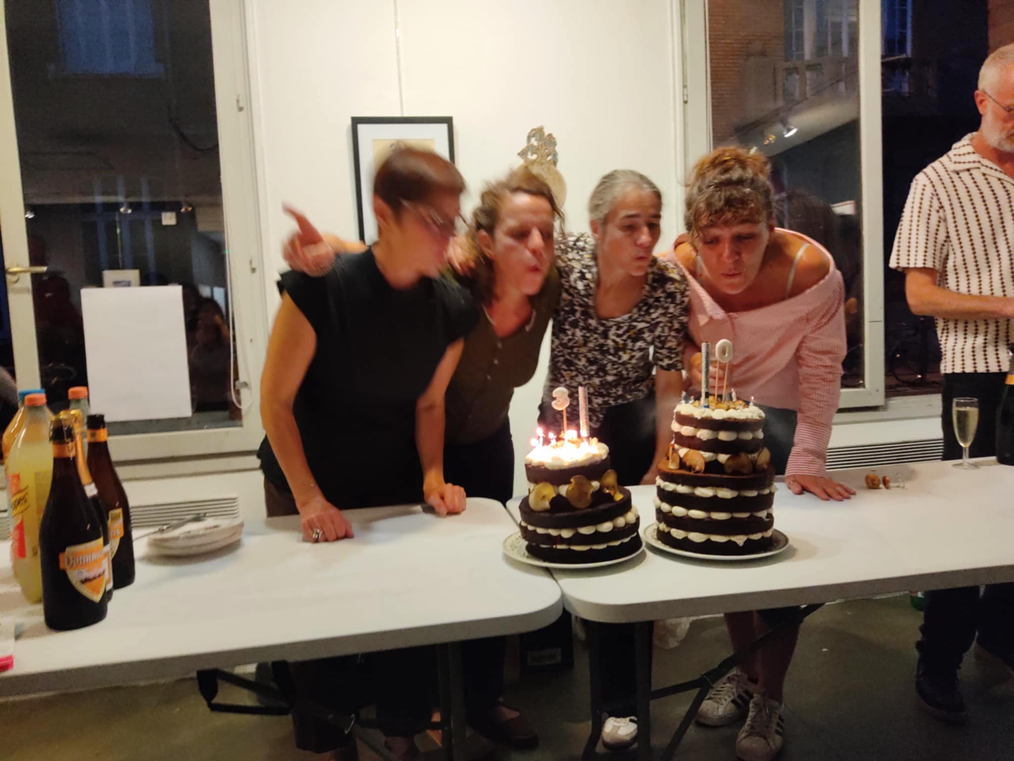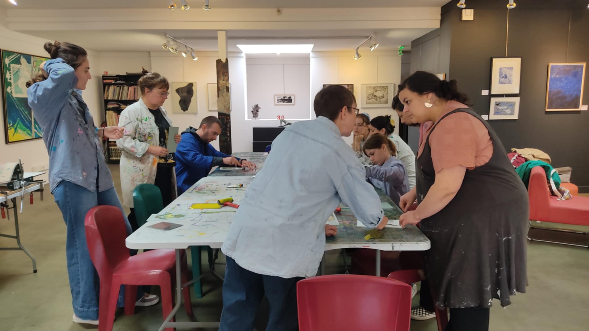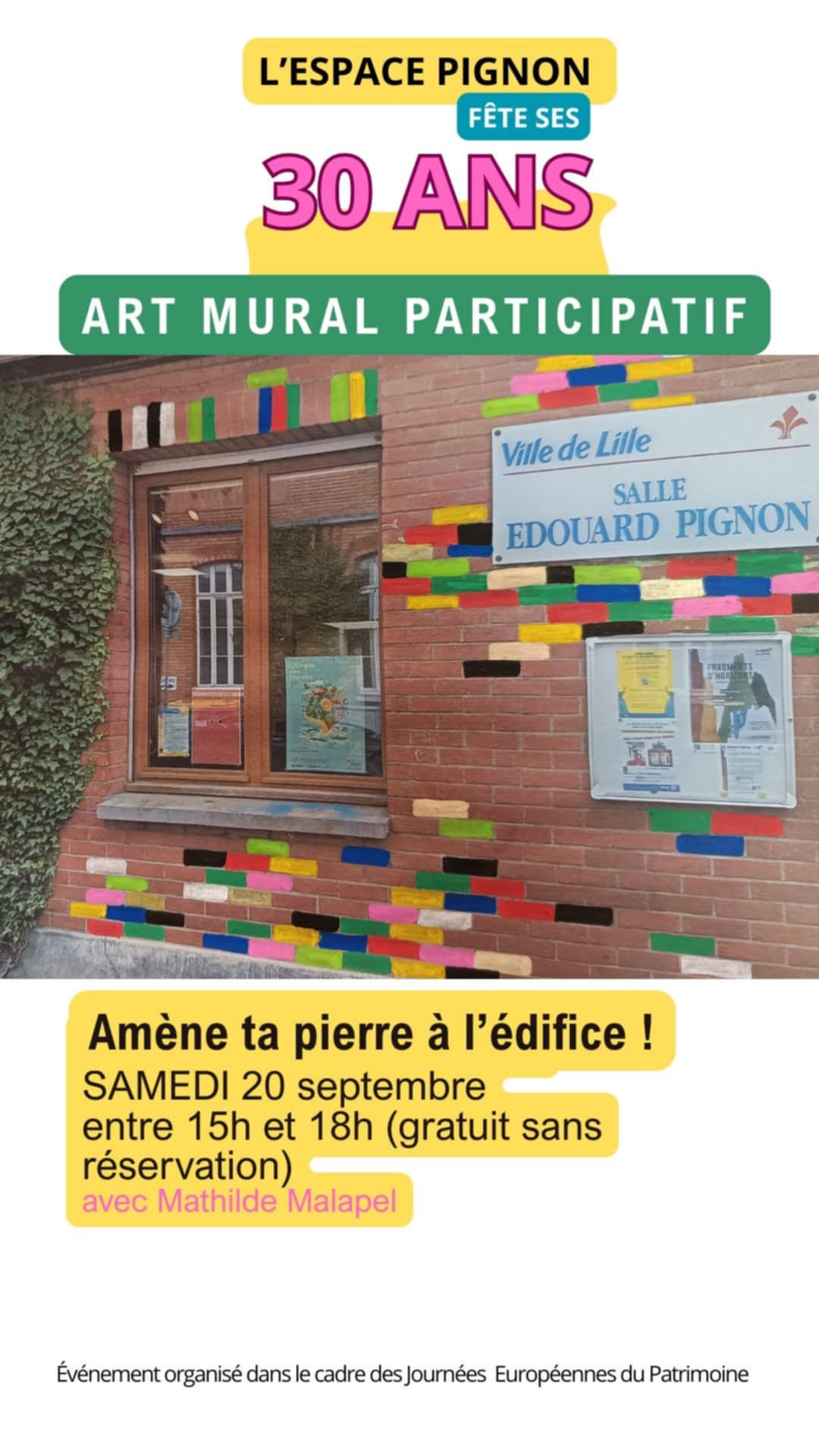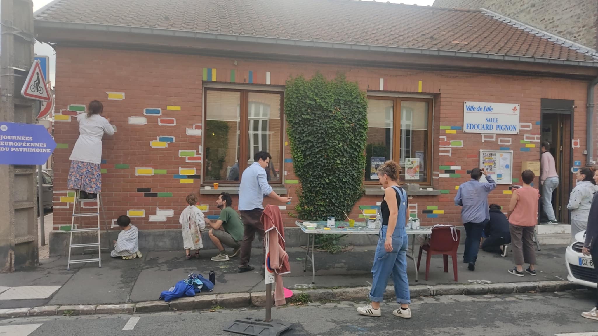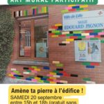 Merci à tous et toutes pour ce week-end d’anniversaire ! Artistes, habitants, partenaires d’être venus fêter cela avec nous ! Merci aux peintres de tous âges qui ont métamorphosé la façade de l’Espace Pignon, aux participants de l’atelier d’impressions végétales qui, sous les conseils d’Hélène Beelkens, ont pu découvrir cette technique étonnante et réaliser des oeuvres magnifiques, merci à tous ceux qui ont inauguré notre première artothèque : une façon de continuer et de diversifier cette belle aventure d’échanges et rencontres artistiques avec vous !
